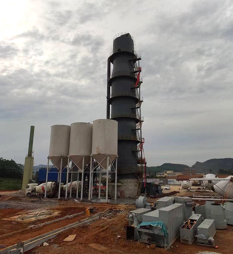助燃空氣由羅茨風(fēng)機從爐體下部吹入爐內(nèi),克服料粒阻力從下部上升至爐頂,在除塵引風(fēng)機的吸引下,煙氣通過管道輸送到除塵器進行除塵。由于引風(fēng)機的作用,使窯內(nèi)料面上方形成微負壓區(qū)(-10Pa左右)。這個微負壓保證了爐內(nèi)氣流順暢,非常有利于煅燒帶石灰石進行分解,引風(fēng)機將全部煙氣引進除塵器凈化,而后從煙囪達標(biāo)排放到大氣中。