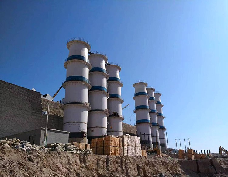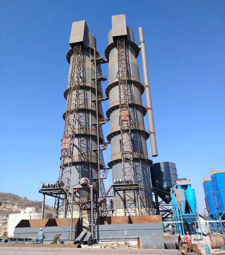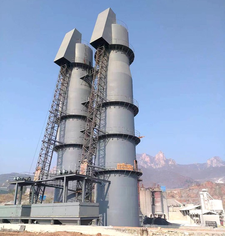 1、石灰立窯,包括外壁,內襯,窯體內承重底板,環(huán)形操作間兼進風通道,窯下內支撐壁鋼筋混凝土主立柱和基礎結構。